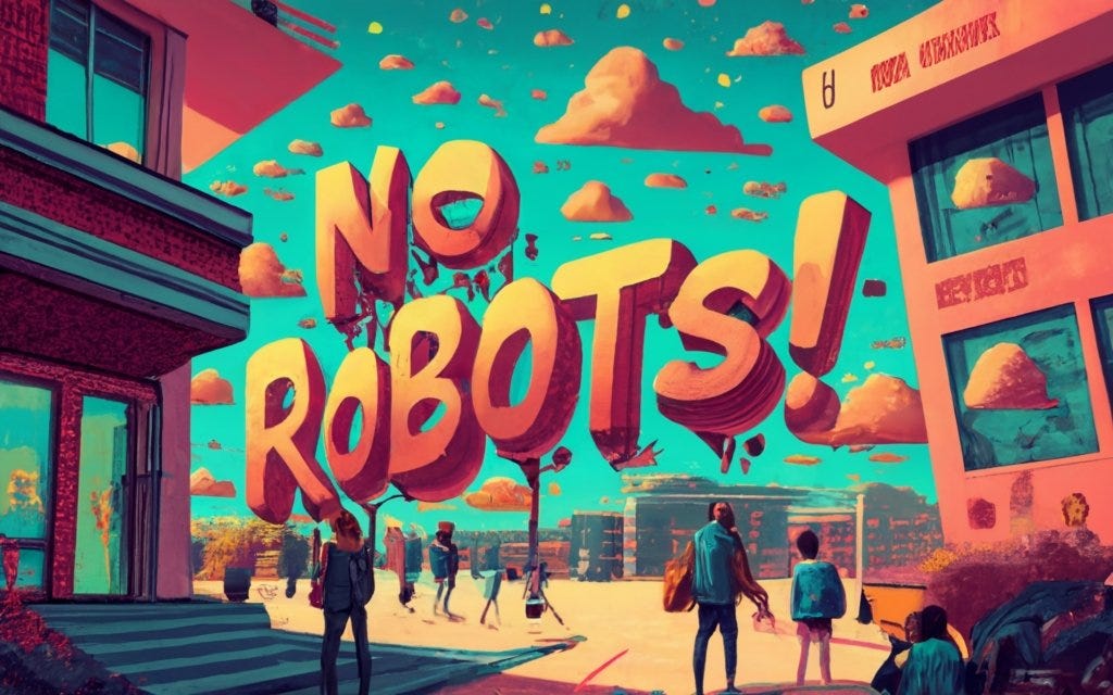 I’m not a particularly visual learner. But using images to convey my ideas is important for the project of developing new conceptual models to help understand generative AI. I used DALL-E for my first post's header and when ideogram.ai made it possible to include actual words in an image, I made it my first choice. Images with words help create header images that are more immediately relevant to the writing that follows, like the use of “No Robots!” in the header above.
