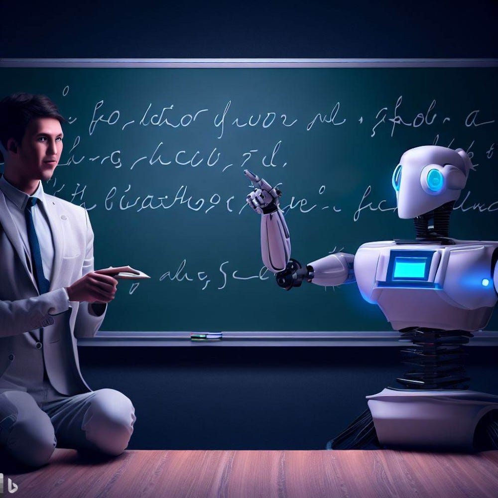I asked it to create an image of AI teaching without a robot, and it returned a robot teaching with a human next to it.